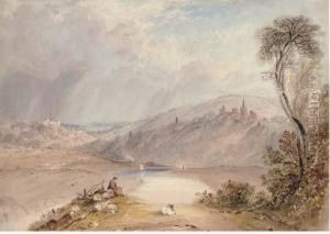 Figures On A Country Path, A Town Beyond