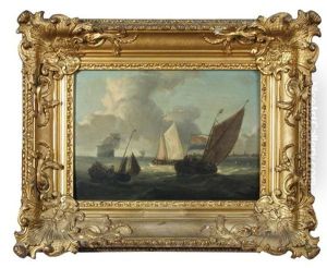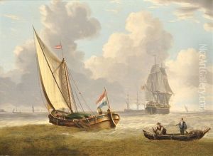 An English Man Of War, A Dutch Barge And Other Shipping Vessels Of The Coast In A Light Breeze