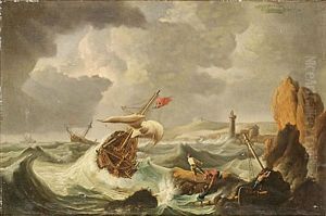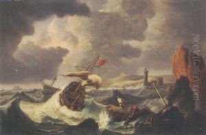 A Squall Off The Dutch Coast, With Small Craft And A Man-o'war Running For Shelter