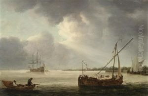 British Men Of War And Other Ships At The Mouth Of Portsmouth Harbor In Choppy Seas