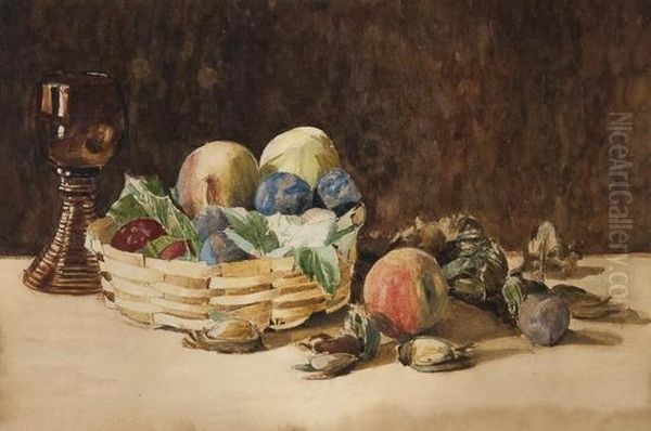 Still Life Of A Goblet, And Fruit And Cobnuts In A Basket