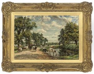 Bring the timeless beauty of Charles Melville Dewey's Cattle Watering In A Summer Landscape into your home with a handmade oil painting reproduction. Carefully recreated on canvas by skilled artists using traditional techniques, this piece captures the delicate brushwork, subtle light, and vibrant color of the original masterpiece. With museum-level quality and rich texture, it brings elegance and artistic depth to any space. Enjoy free shipping and make this masterpiece a part of your personal collection.