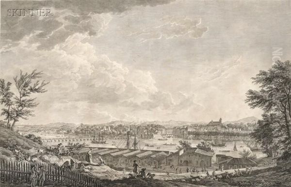 Vue De La Ville Et Du Port De Bayonne Oil Painting by Charles-Nicolas I Cochin