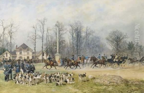 Rendez-vous A La Croix De Souvray En Foret De Fontainebleau De L'equipage De Bois Boudran Au Comte Greffulhe