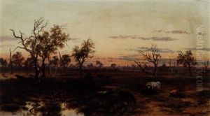 cattle By A Stream At Evening