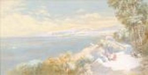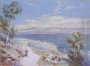Figures On A Cliff Path, Near Positano, Bay Of Naples