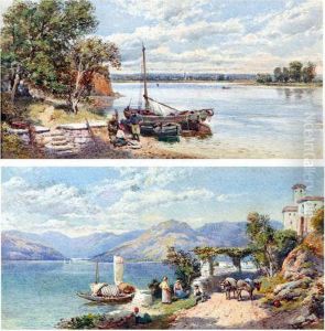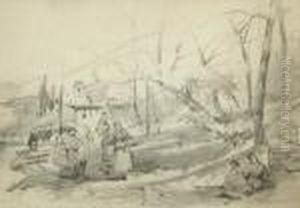 Figures And A Goat Beside The Edge Of A Lake; And Figures In Arowing Boat Beside The Shore