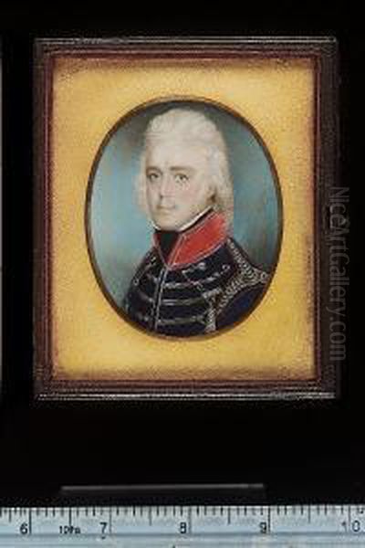A Pair Of Portraits Of An Officer, Wearing Blue Coat With Red Collar, Silver Lace And Epaulette; And His Mother, Wearing Grey Silk Dress With Patterned Black Lace Shawl, An Indoor Bonnet Decorated With Bows Over Her Light Brown Hair