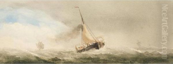 Yacht In Full Sail; Steam Barge In High Seas