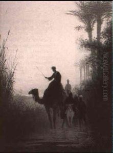 Caravan Entering An Oasis, Sunset Oil Painting by Charles Theodore Frere