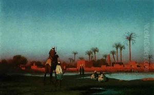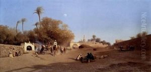 La Caravane Quittant Le Caire Au Coucher Du Soleil