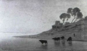 Lavandieres Et Mosquee Aux Environs Du Caire