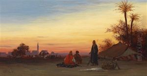 A Caravan At Rest, The Temple Of Karnak, Thebes In The Distance