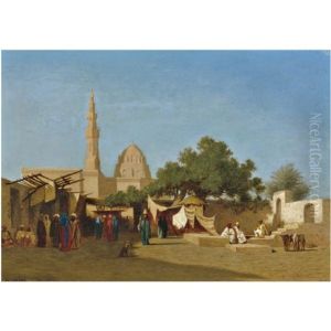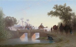 A Camel Train At An Oasis, Cairo Beyond
