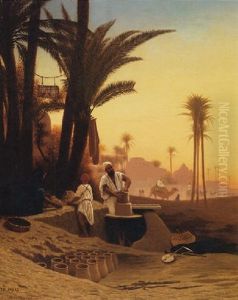 Lavandieres Et Mosquee Aux Environs Du Caire