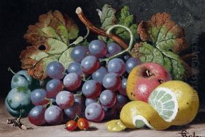 Apples, Grapes, A Pear And Blossom, On A Mossy Bank