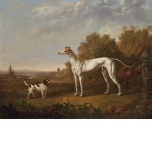 A Marlborough Spaniel In A Wooded Landscape, A Windmill Beyond