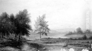 River Landscape With Fisherman