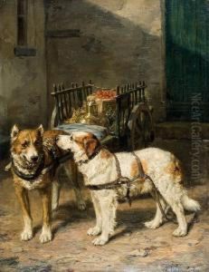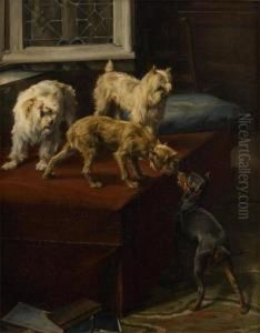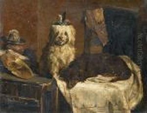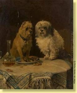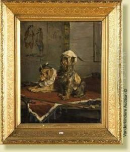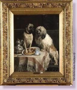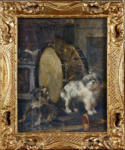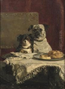 Interior With A Pair Of Dogs, Fighting Over A Cake