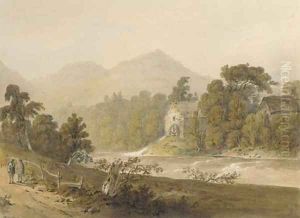 Fishermen By The River Tay, Perthshire, With Taymouth Castle Beyond