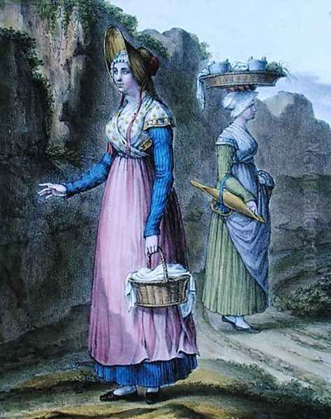 Peasant Girls from the Lyon Region, plate 2 from 'Suite de Costumes', c.1845