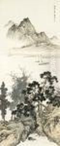 Chen Shaomei: Ink And Color On Silk Painting 'mountain Scenery