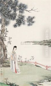 Hanging Scroll, Female Beneath Pine