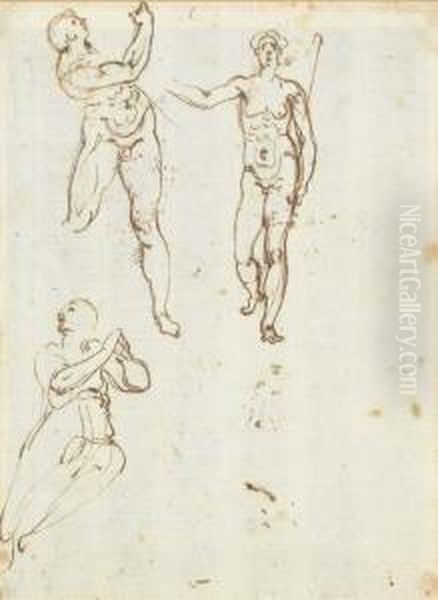 Studies Of Saint John The Baptist Carrying A Crook, A Figureholding A Block And A Kneeling Female Looking Up (recto); A Puttoin Flight (verso)