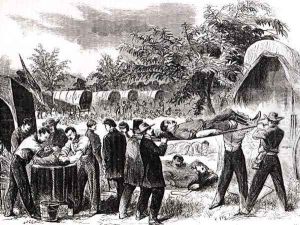 Ross Lewis Mangles 1833-1905 saving a wounded soldier of the 37th Regiment during the Indian Mutiny of 1857