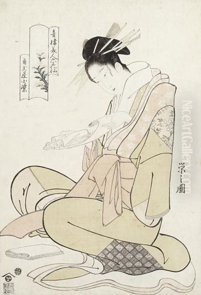 The Courtesan Komurasaki, Kneeling Before A Wad Of Kaishi , Unfurling A Love Letter