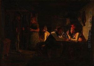 His works are noted for their detailed precision and his ability to capture the simple lives of country people with sincerity and compassion. Notable works include 'In the Carpenter's Workshop' and 'Mormonens Besøg'. The former is a testament to his meticulous approach to genre painting, reflecting the everyday life of 19th-century Denmark.