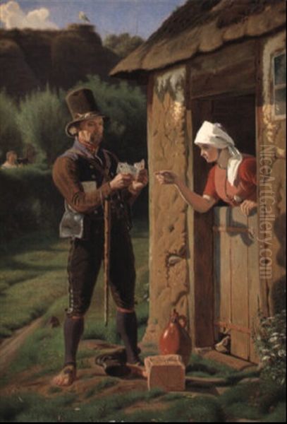 En Landsbypost Oil Painting by Christen Dalsgaard