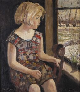 Pige ved vindue.