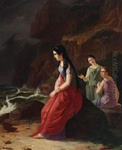 Two Monks In A Loggia With A View Of A Mountain Landscape