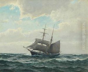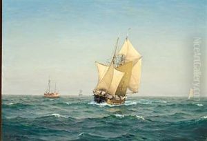 Marine Med Sejlskib Ved Skagen, I Baggrunden Fyrskibet "skagens Rev"