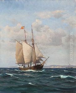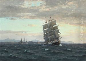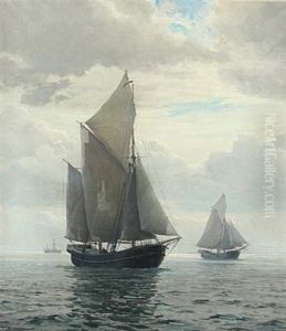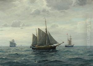 Seascape With Sailing Ships And Ferry Off Sprogo