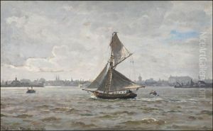 Seascape With Sailboats And Steamer In The Background
