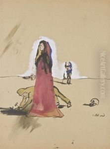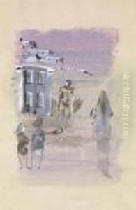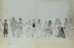 Trois Petites Filles En Rose Devant Une Assemblee De Personnages