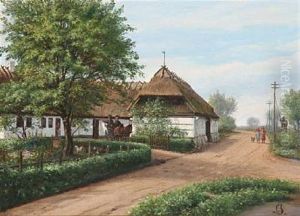 Landskab Med Personer Og Udsigt Til Dansk Provinsby