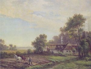 Motiv Fra Udkanten Af Sletten Med Plojende Mand, I Horisonten Kronborg