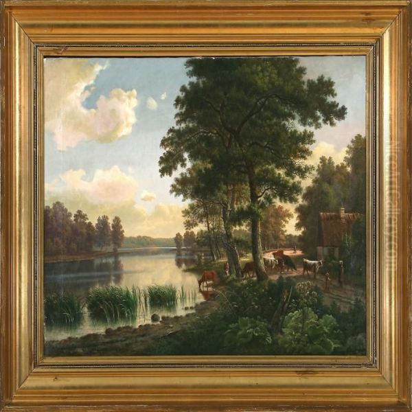 Bring the timeless beauty of Christian Berthelsen's Cows At A Pond into your home with a handmade oil painting reproduction. Carefully recreated on canvas by skilled artists using traditional techniques, this piece captures the delicate brushwork, subtle light, and vibrant color of the original masterpiece. With museum-level quality and rich texture, it brings elegance and artistic depth to any space. Enjoy free shipping and make this masterpiece a part of your personal collection.