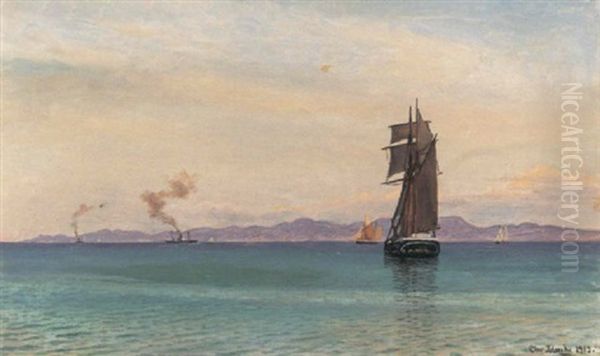 Sejlskibe Ud For Kysten Oil Painting by Christian Vigilius Blache