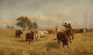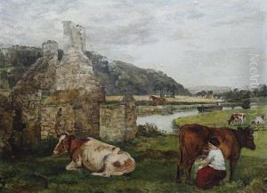 Szene Mit Kuhen U. Pferden