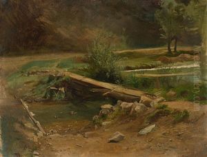 Landschaft Mit Baumbrucke Uber Bachlauf In Der Umgebung Von Dresden