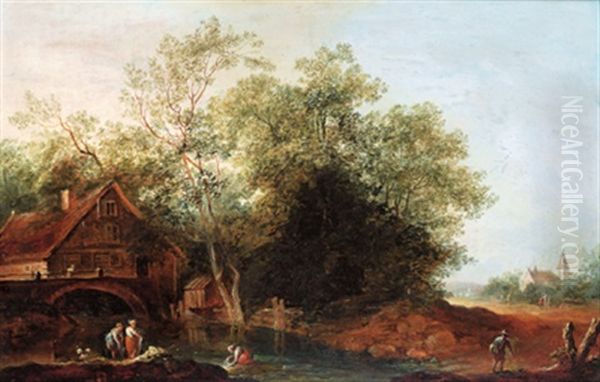 Wascherinnen Vor Einem Bauernhaus Im Walde An Einem Bach