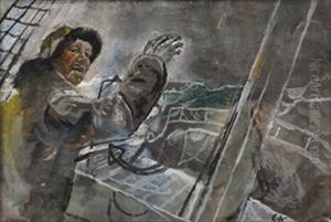 A Helmsman In Stormy Weather On The Sea