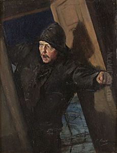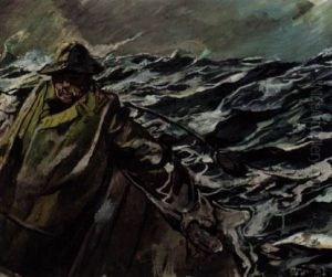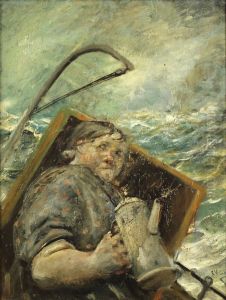 Untitled [sailor on a ship deck in a storm)