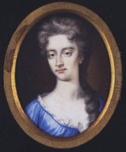 Queen Anne (1665-1714), In Blue-lined Aubergine Dress Over Frilled White Chemise, Striped Black Veil