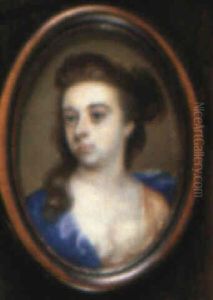 A Lady, Wearing White Dress Edged With Gold Embroidery And Fastened At Her Decollete With A Strand Of Pearls (+ A Lady, Called Anne Parry Price (nee Puleston) Wearing Blue Dress With Lace Trim ([pair)