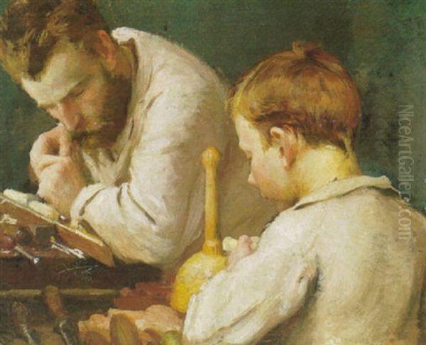 Mester Og Laerling I Snedkervaerkstedet